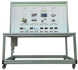 DC-AC模塊(12V轉(zhuǎn)220V)、點(diǎn)火開關(guān)、AC-DC模塊(220V轉(zhuǎn)12V)、升壓模塊(12V轉(zhuǎn)24V)、降壓模塊(24V轉(zhuǎn)12V)、發(fā)光二極管閃光燈燈條、指示燈、操作開關(guān)、接觸器、急停開關(guān)、一體化全鋁合金型材搭建的移動(dòng)臺(tái)架(1500×700×1700mm 帶自鎖腳輪裝置,帶安裝檢測(cè)端子的原理面板,面板1448×940mm)、設(shè)備操作說明書。