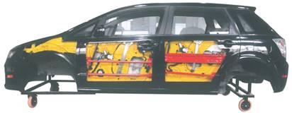 4.車身安裝有真實(shí)可運(yùn)行的原車車身電器低壓系統(tǒng)(包括燈光、中控門鎖、電動車窗、電動后視鏡、音響等),展示車身電器低壓系統(tǒng)的結(jié)構(gòu)與原理、動態(tài)演示車身電器低壓系統(tǒng)工作過程。